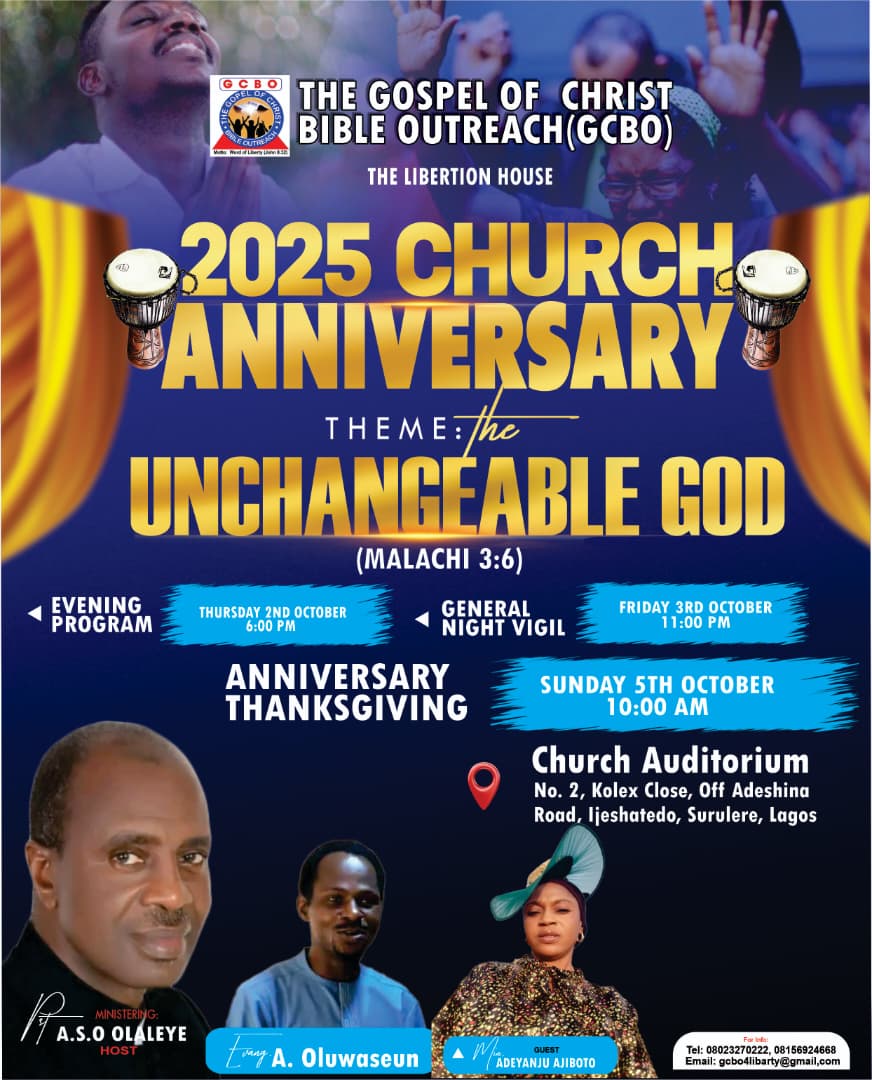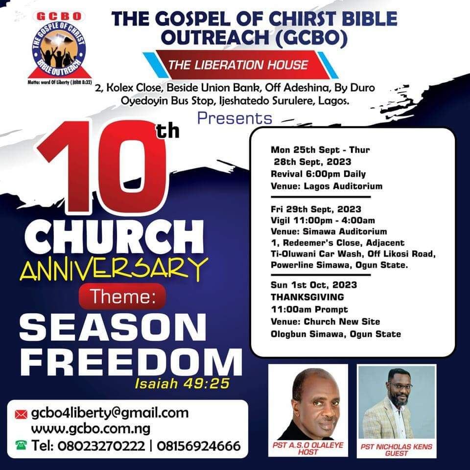 GCBO just celebrated her 10th Church Anniversary on the 25th September - 1st October, 2023. See flier for more details